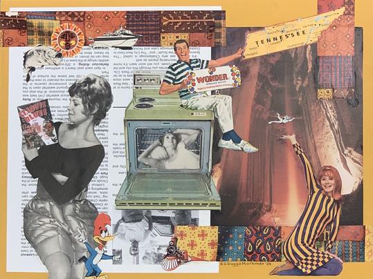 Chattanooga - Fun City, Collage on wood panel, 9" x 12", 2024.