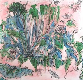 What's Bugging Me?, Marbled paper, pen and ink, 12" x 12" , 2024.