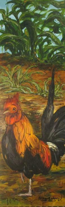 When the Rooster Crows, 18" x 36" Acrylic Paint, 2025.